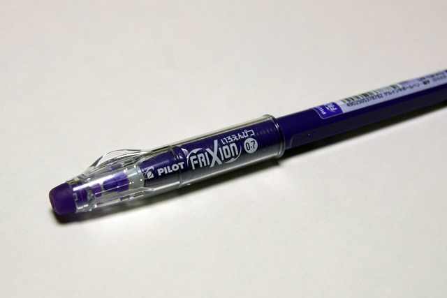 軸にダイレクトにインキが封入されているフリクションいろえんぴつは130円(税抜)ですから、「キャップがついている分10円高い」と思ってください! 本体がレフィルなんですよあれは!