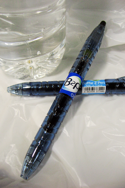 ペットボトルのリサイクルを誇示するかのようなボディデザイン、中央のマーク部分は紙巻き(!)。