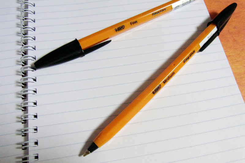 通称オレンジBic。皆さんご存知の、あの「ぬるぬる書ける事務用ボールペン」です。