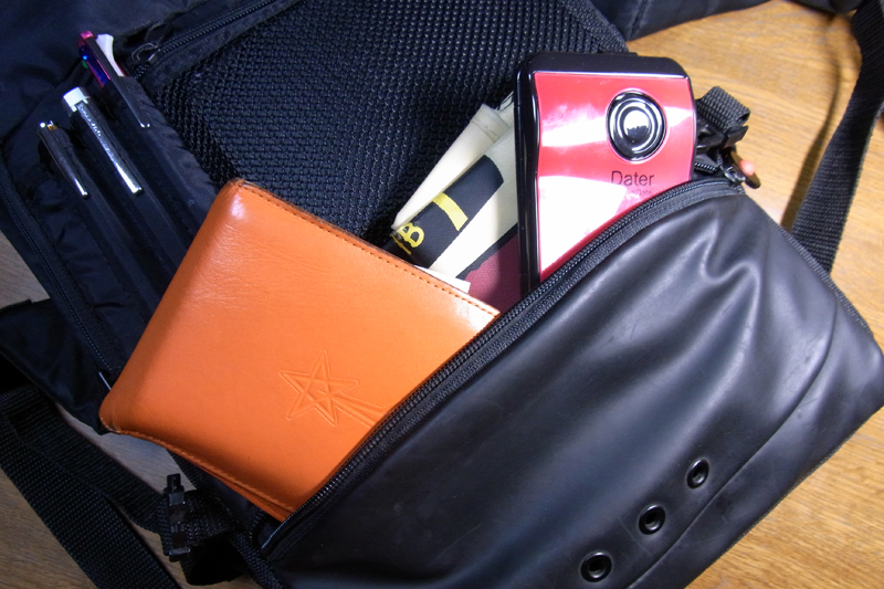下部のポケットには財布とDATERとエコバッグを。