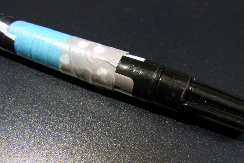 さらに、細側のキャップを極細側に差す関係上、嵌合する部分にはマステを貼ることが出来ずかなりの惨状に。