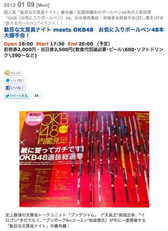 駄目な文房具ナイト meets OKB48 お気に入りボールペン48本 大握手会!