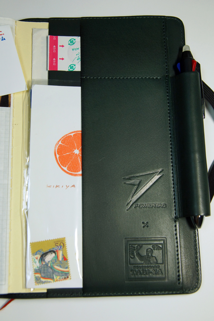 開いた右側、表3は内ポケットを2段に分割。下ははがきがするりと入るサイズで、上はフリーポケットです。小生は常に絆創膏を入れています。