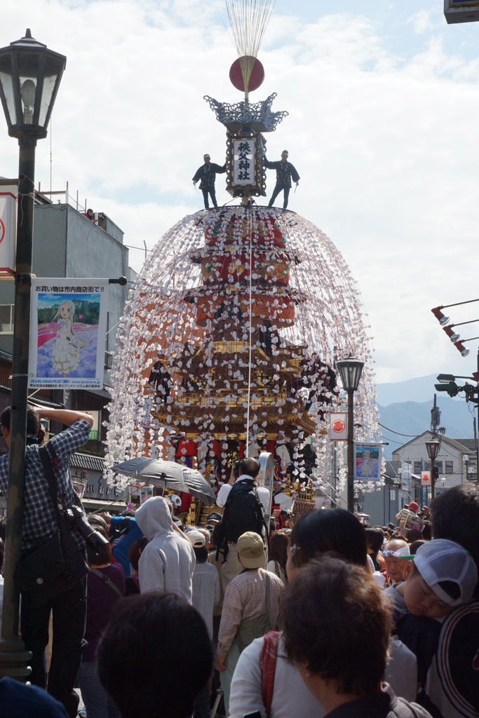 朝は天気が悪く、東京を出発するときは雨降りだったのですが、秩父では雨は上がっておりました。降雨仕様だった笠鉾も、外装を晴れ仕様に換装。
