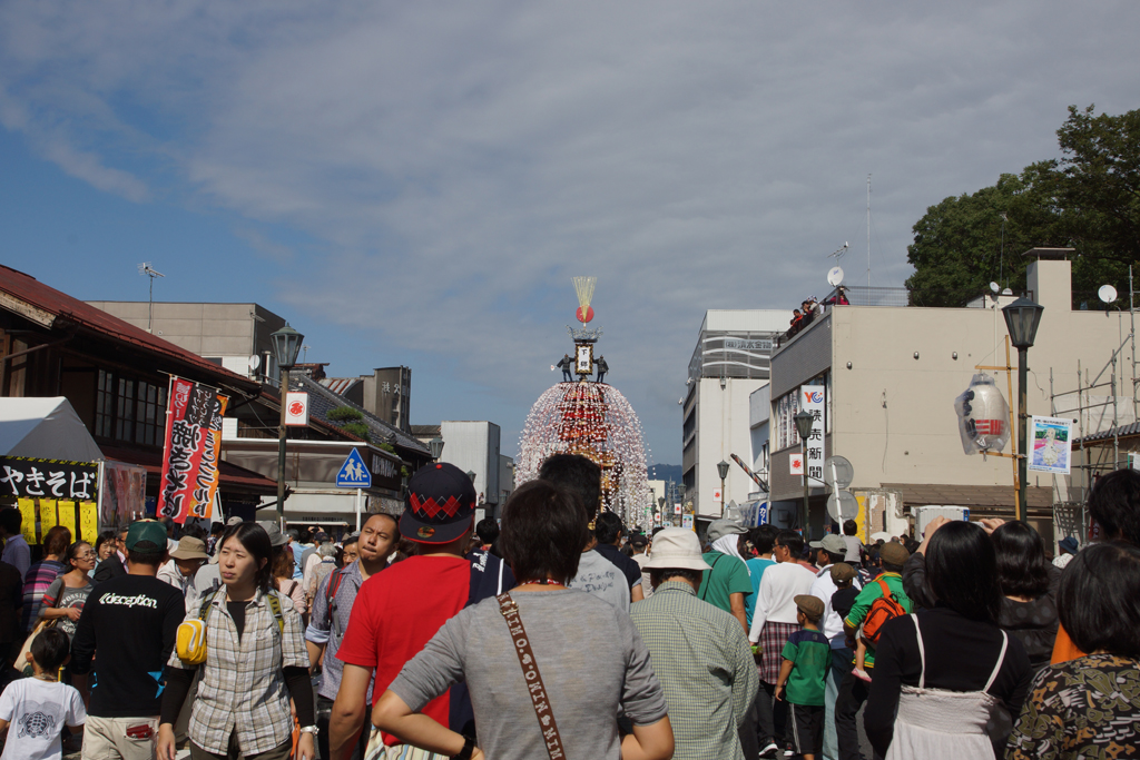 秩父神社で回頭する笠鉾。これまた大迫力です。