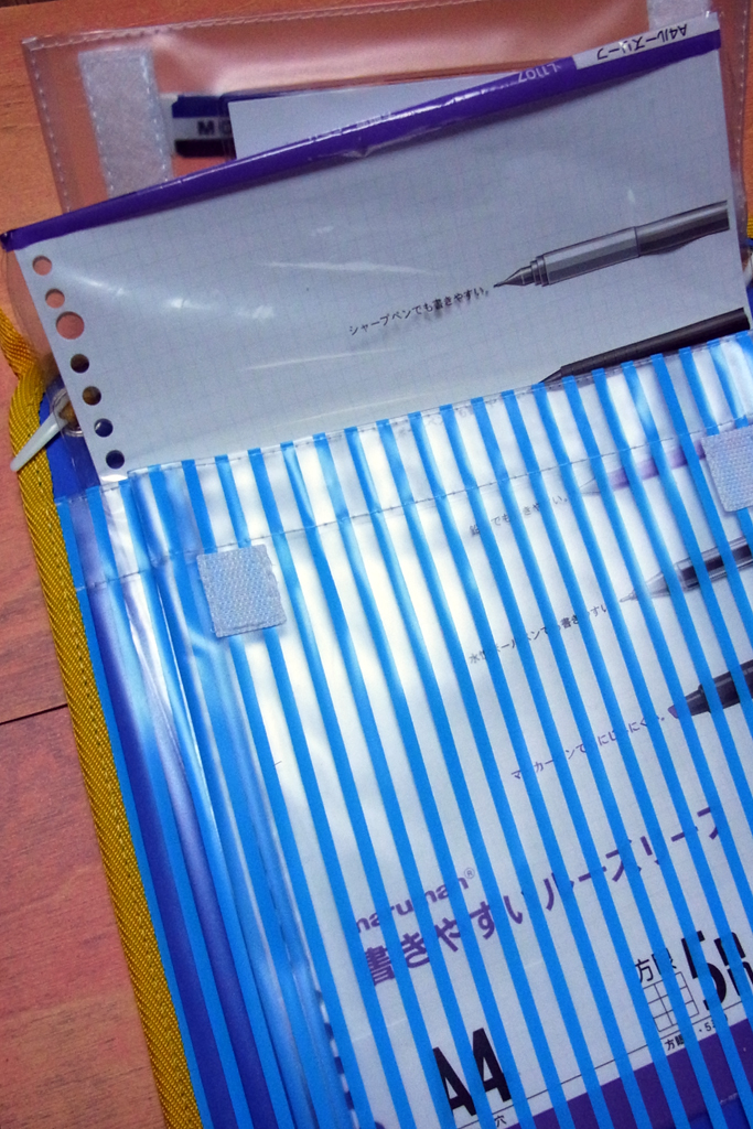でかいポケットもありますので、ここに予備の紙を入れたり、もっと大きいもの(例えば定規やパンフレットなど)を入れることができます。