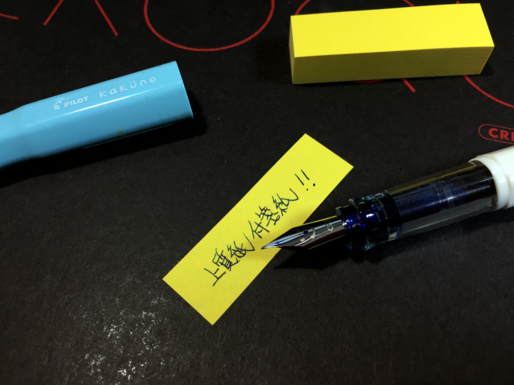 最近はまあ種類も増えたのでそんな紙ばかりではないと思うのですが、ポスト・イットに代表される黄色い付箋紙って、万年筆で書くと滲みまくったりぜんぜんインキが乾かなかったり。