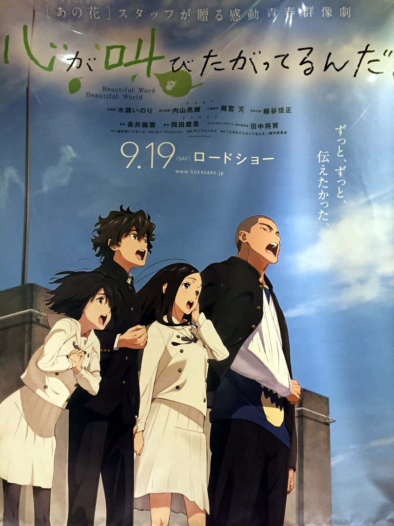 9月19日(土曜日)より全国公開となった劇場オリジナルアニメーション映画『心が叫びたがってるんだ。』を鑑賞して参りました。