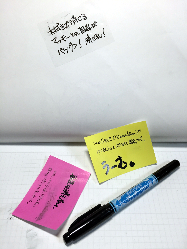 そういう意味では、マグネティックノートに最適な筆記具はゼブラの水拭きで消せるマッキーです。