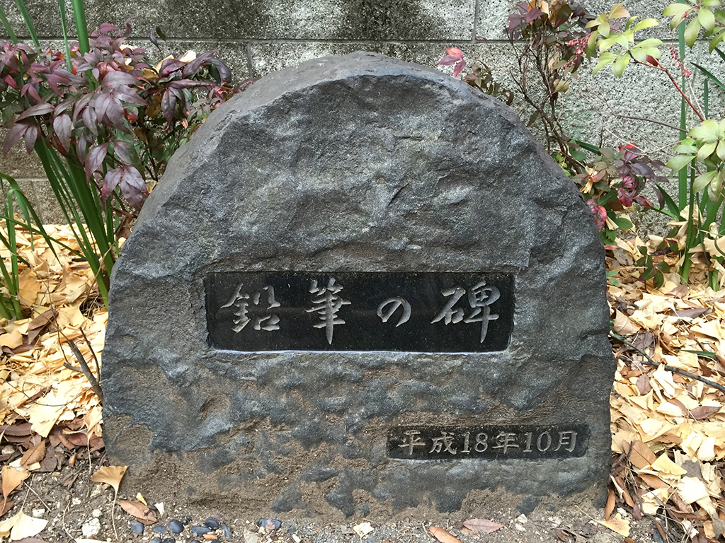 ここに、三菱鉛筆創業の碑、「鉛筆の碑」があります。