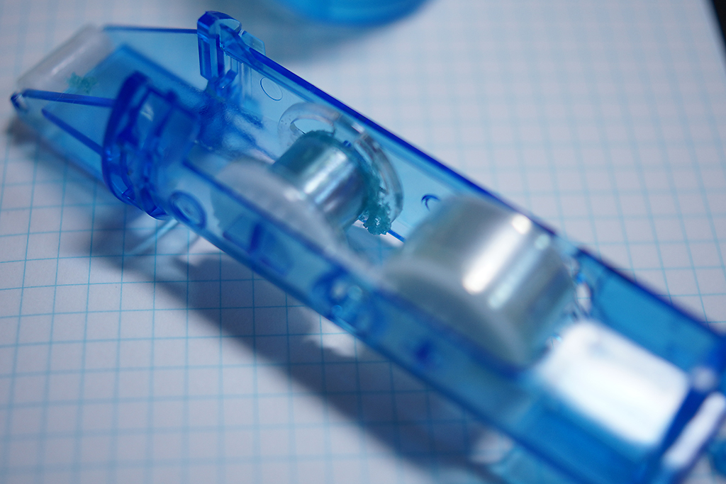 これは別にドットライナースティックが悪いのではなく、小生が使うとコクヨだろうがトンボだろうがニチバンだろうがプラスだろうがパイロットだろうが、みーんな使い切る前にギアが回らなくなるのです。