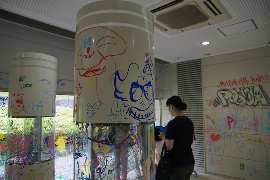 基本の筆記具はポスカですね。ポンキーペンシルも置いてあったのですが、大きく落書きするならやっぱり太字や極太のポスカがいいようです。