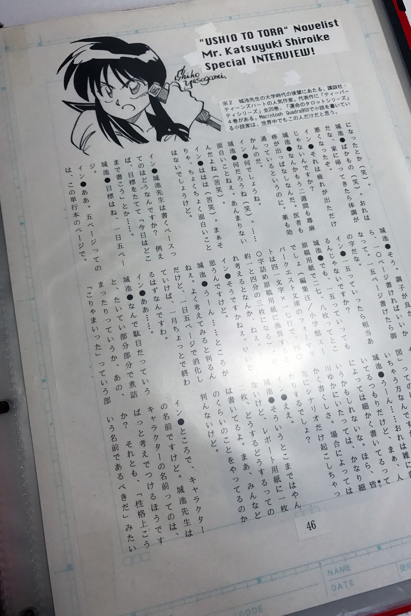 小学館スーパークエスト文庫で『うしおととら』小説版が発売になり、それを当時の小生が作者(城池勝幸=中山文十郎先生)にインタビューしたのです。