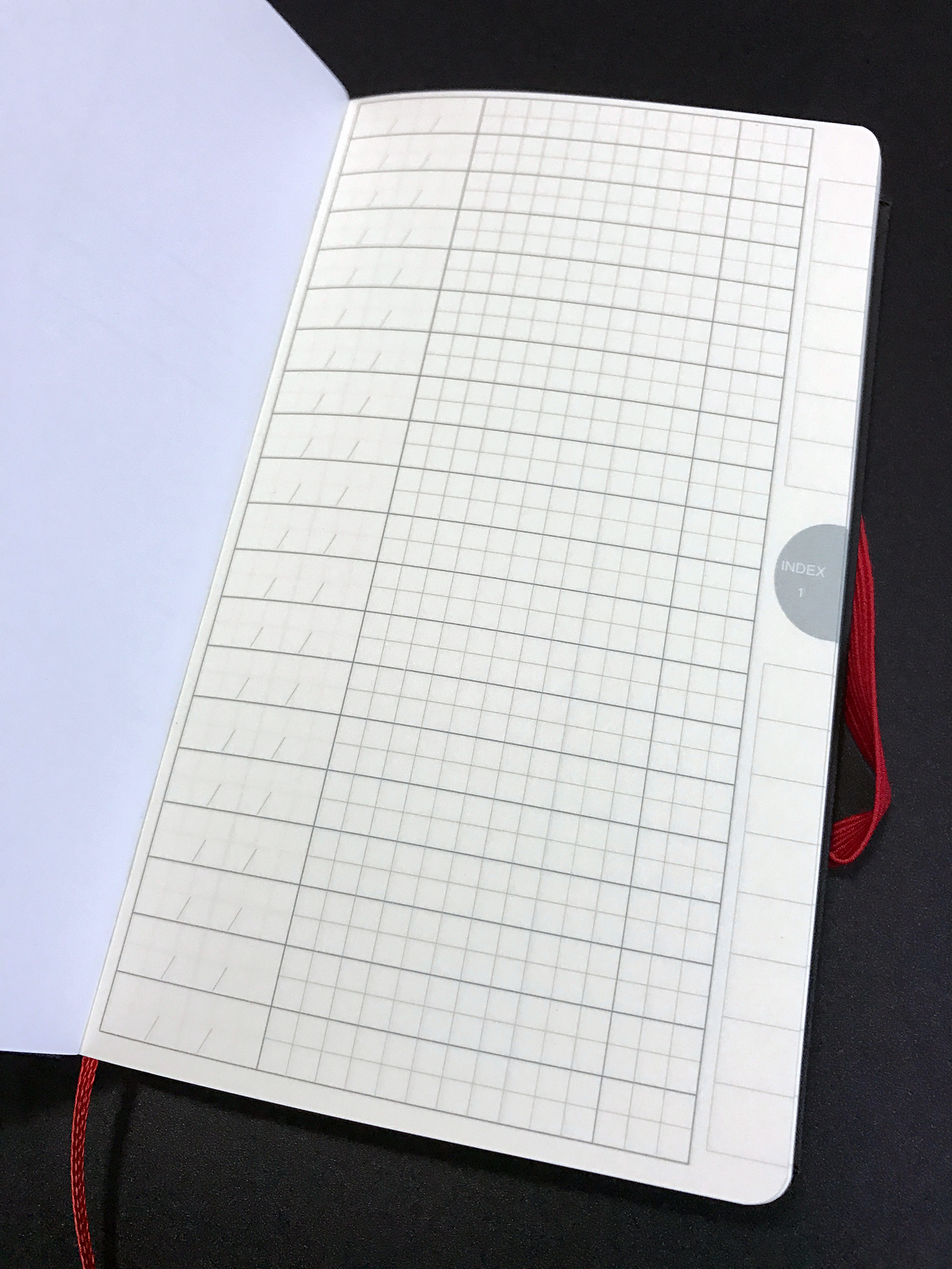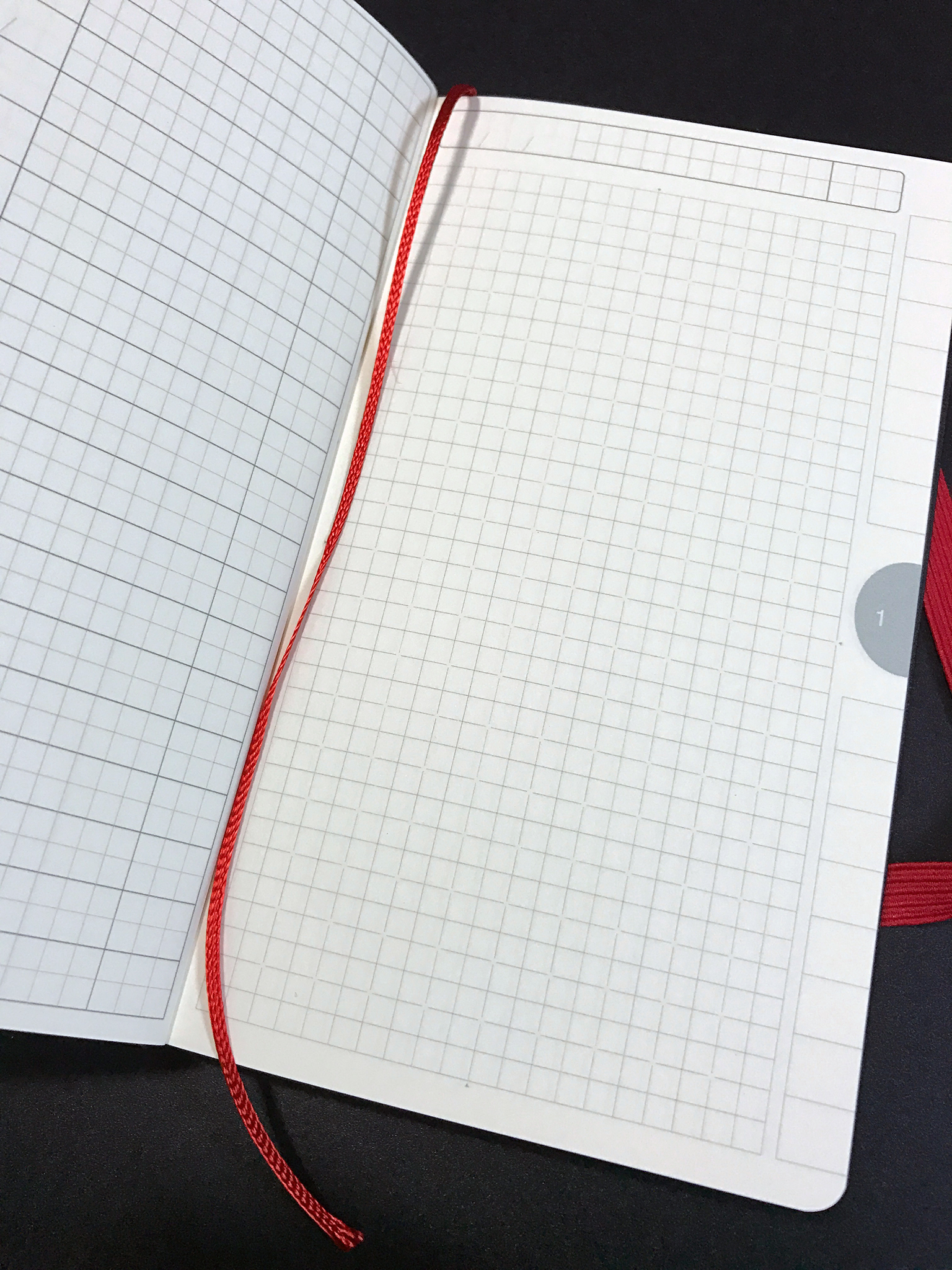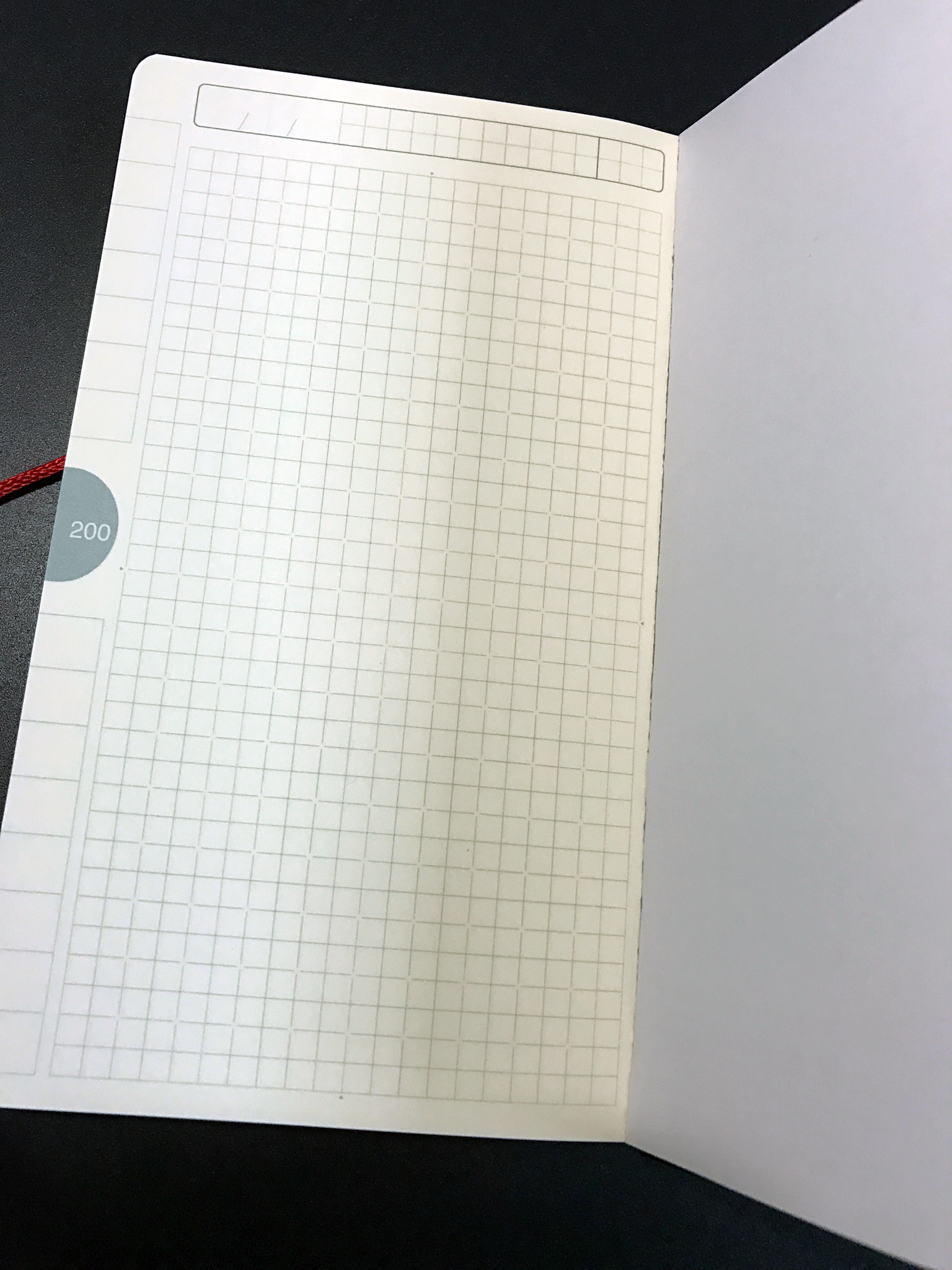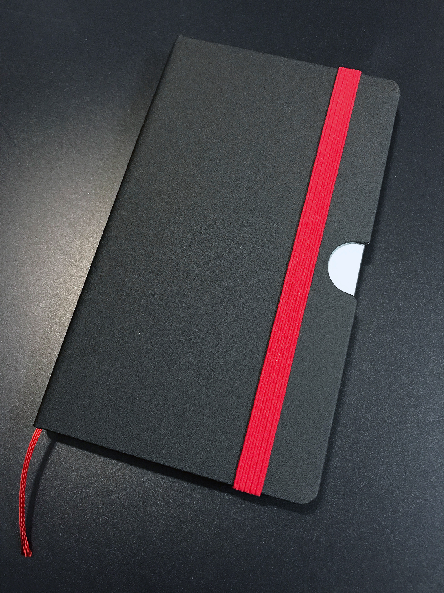 会社でのA5プラスサイズが黒/赤、グレー/グリーン、白/ピンクときて、現在4冊目の黒/赤を使用しているので、小生はまず黒/赤から開けました。ただ、3冊の中で一番気に入っている配色はグレー/グリーンです。