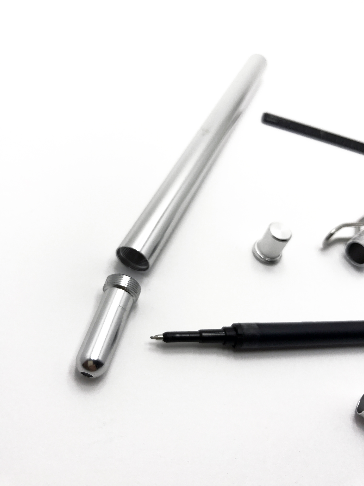 後方からペンシャフトにリフィルを挿入したら、リアキャップを入れて付属のL定規でゆっくりとリアキャップをねじ込んでいきます。