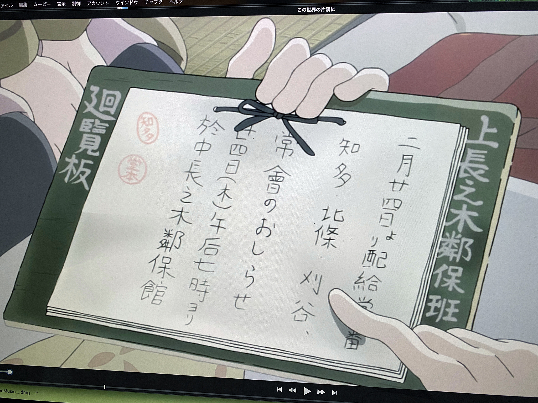 そういう意味では原作通りではあるのですが、こうの先生も片渕監督も、この「覧」が書かれた回覧板を資料上で確認しているから使用されているのだと思います。