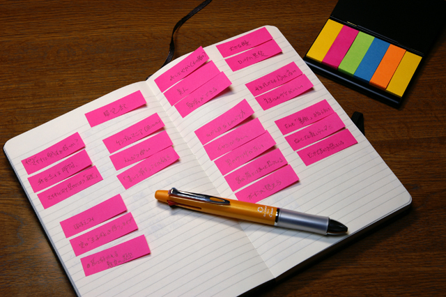 三種の神器を肌身離さず。何か閃いたら問答無用でポスト・イットに書き込み。