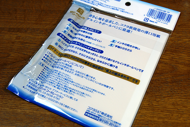 裏面には堂々と「ハイテックC+MIO PAPERは書き心地抜群の“極上の組み合わせ”です」と記載されています。連絡先もパイロットとコクヨS&Tのダブルネーム。