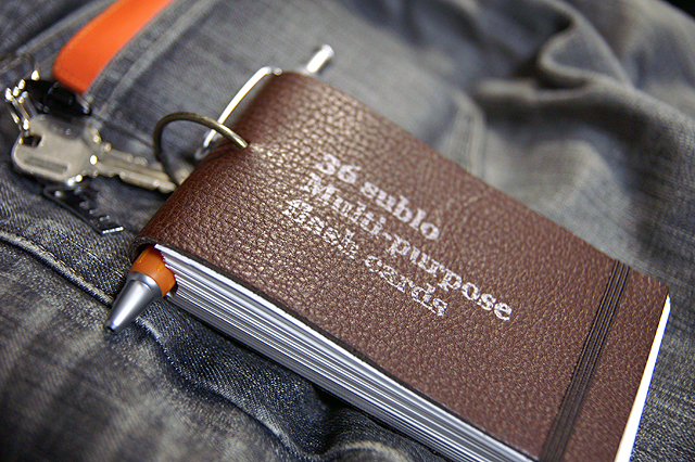 吊ってみる サブロで5×3カードホルダーを購ってきたので、腰から下げて使ってみました。でかいです。重いです。チャチなキーバックを購ったので、だらーんと下がってしまいます。ボールペンはアウトドア使用を考えて、トンボ鉛筆のエアプレスにしたのですが。やっぱり押されてペン先が出てしまいます。当たり前ですよね。うーむ。改良の余地ありだな。 [0回] コメント コメントを書く コメントを書く コメント送信