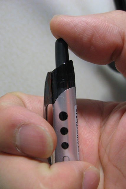 あるいはペンを回転させて、掌側からクリップを外に追い出すのですか?