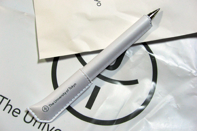 東京大学コミュニケーションセンターのロゴが入った「コミュニケーションツール」、商品名は「ペンカバー(ボールペンつき)」です。