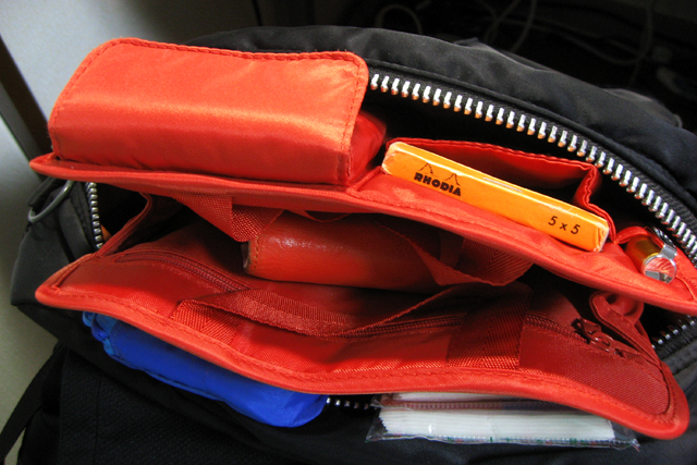 前面ポケットにはロディア11とモレスキンポケット、ペン差しにはタイムライン。