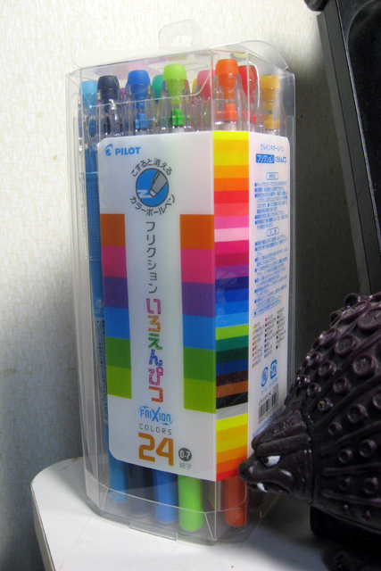 サンタが文具を持ってきた 今年はなぜか「クリスマスのプレゼント、欲しい物が何も思いつかない」というムスメ。小生のセレクトで文句は言わない、というので今年はこれをあげることにしました。パイロットのフリクションいろえんぴつ24色セットです。小生だって持っていないのに!(笑)まあ、文房具マニアの父親を持った不幸を呪うがいい、って感じですか。楽しく使って欲しいものです。で、飽きたらくれ! [0回] コメント コメントを書く コメントを書く コメント送信