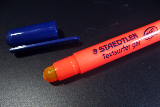 ゲルインキダイレクトの利点ですね。水分たっぷりの蛍光ペンには真似できない性能だと言えます。