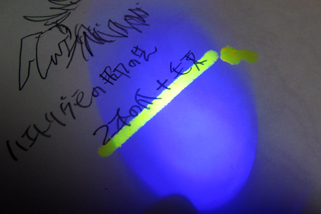 確認のためにブラックライトを当ててみました。
