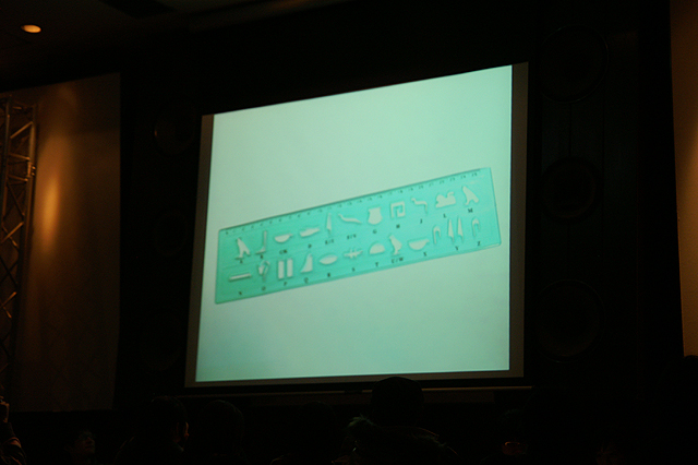 きだて氏がヒエログリフの書ける定規を紹介し。