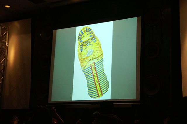清水さんが「ファラオの寝心地」ツタンカーメン寝袋を紹介する、と。