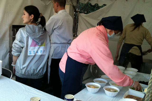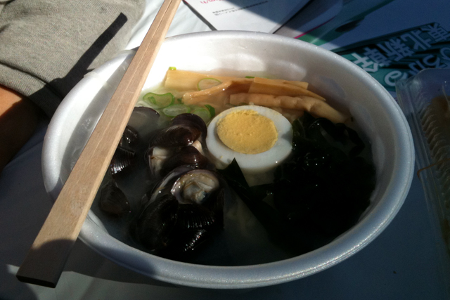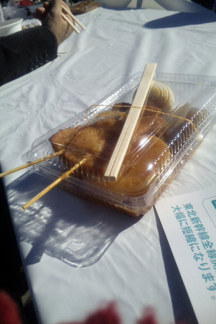 およめさんとダイノジは列に並ばずに買えた生姜味噌おでんと。