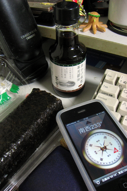 いっしょに写っている醤油は、文具王のお土産。「卵かけ御飯専用醤油」です。