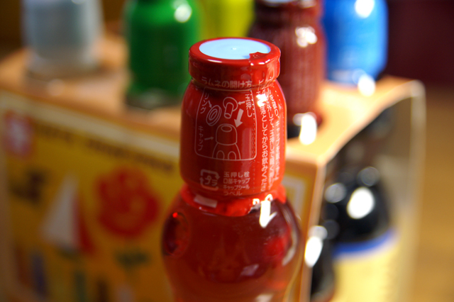 ビー玉を押し込んで飲むのは昔ながら。あとでビー玉が取り出せるのは現代風。