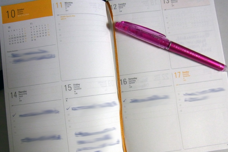 ヴェルターは月曜のマスの左側にメモ欄があり、「この週にすべきこと」を記入することができるので、コントロールすべき項目があった場合はそれをメモしておきます。