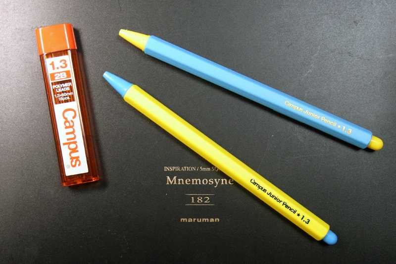 ラインナップは1.3mmと0.9mm、軸色は男女の差を意識してか、青系とピンク系に分かれています。