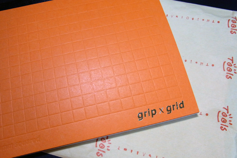 あと、表紙を背方向に折り込んで使えるA5判のクロッキー帳「grip×grid」。10ミリ方眼でリングがない横方向の用紙、切り離して保存が基本というところが気に入りました。