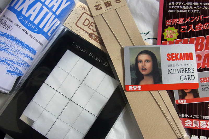 デスケル、芯抜き、フィキサチーフ。で、今後の購入のことも考えて、世界堂メンバーズカードも入会してきました。
