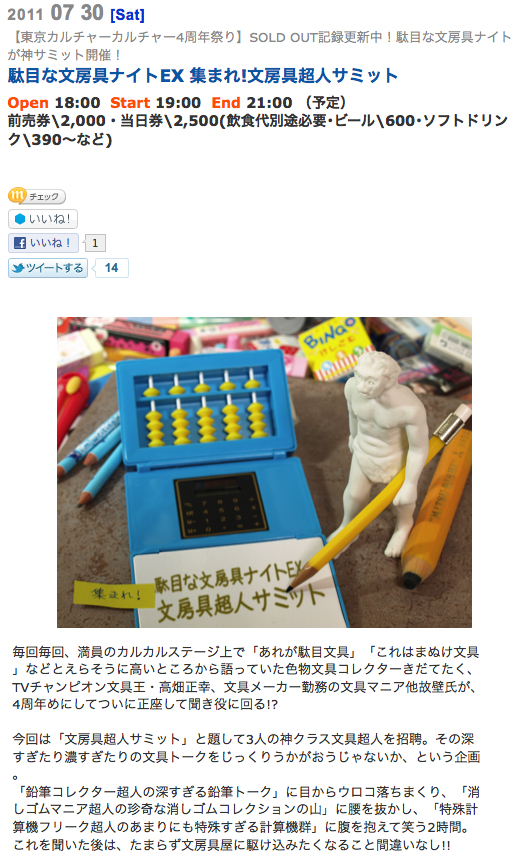 駄目な文房具ナイトEX「集まれ! 文房具超人サミット」 この夏もカルカルでぼくと握手!7月30日は駄目文ですよ!チケットは近日発売です!刮目して待て! [0回] コメント コメントを書く コメントを書く コメント送信