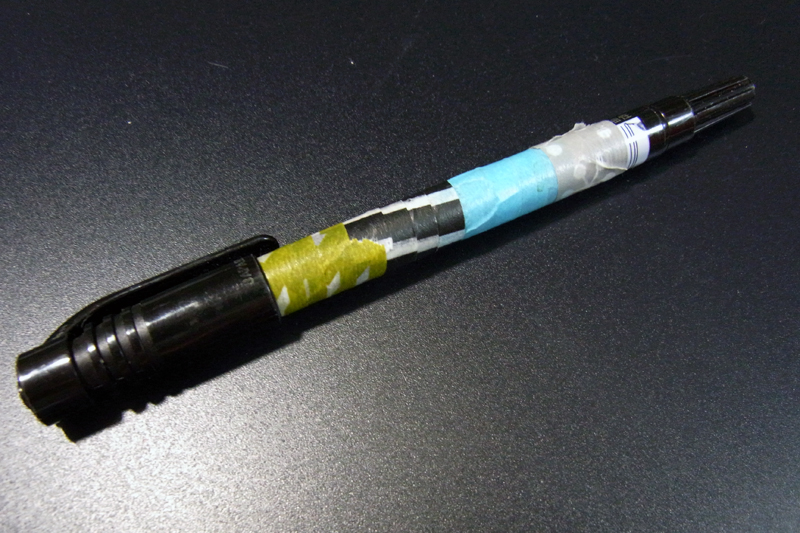 さらに、細側のキャップを極細側に差す関係上、嵌合する部分にはマステを貼ることが出来ずかなりの惨状に。