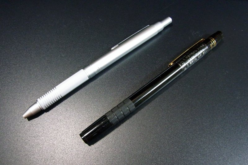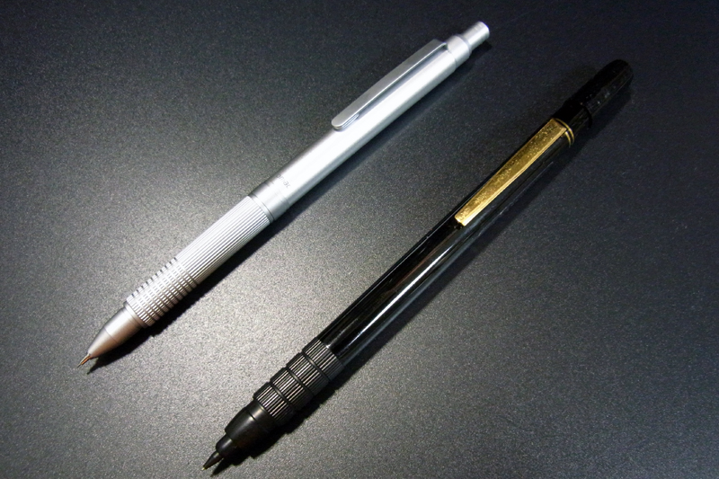 芯を保護するパイプが芯の減りともに紙に接地して下がり、ペンを紙から放すと少しだけ芯を繰り出して戻る。それがオートマチックシャープの基本性能なわけですが、この「パイプが紙に当たっている」というのが大嫌いで。
