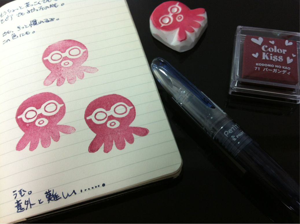オレたちゃクロダコ 木木屋さんにお願いして掘ってもらった、小生のアイコンたる「たこスタンプ」。ようやくスタンプ台を買ってきたので、押す練習をしていたのですが。うむ。うまく押せない……練習あるのみ、ですね。 [1回] コメント コメントを書く コメントを書く コメント送信