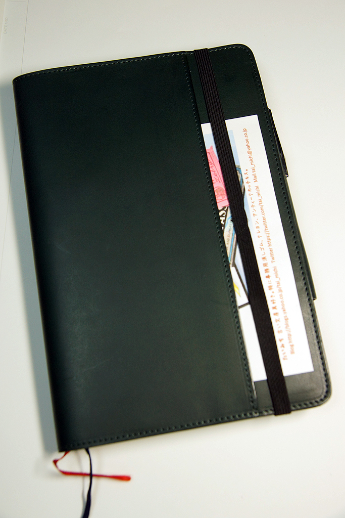 また、いっしょにあきらレザーさんにお願いして作成してもらったThe Design Mind Company ノートブックL用ジョッターも大変便利で美しい仕上げになっています。