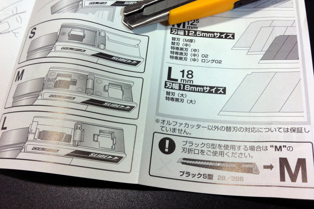 この商品のキモは、Sサイズ刃、Mサイズ刃、Lサイズ刃のどのカッターでも「安全に、簡単に」刃を折ることが出来るこの仕組みにあります。