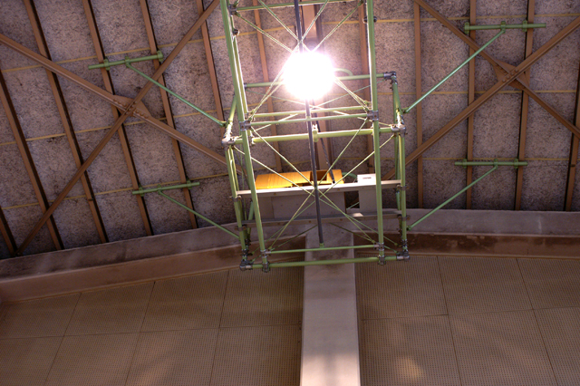 見上げればバスケットゴールが天井で怪しく輝いていたり。