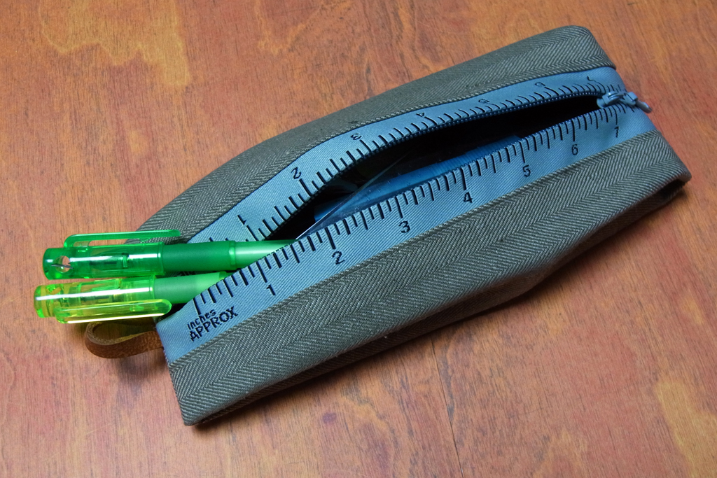 同じく残念賞のペンケース。タグ等なくメーカーも生産国も不明ですが、ジップトップには「DESIGN OF ITALY」と彫られています。大きくて収納力もありそうなので、昨日入手した定規ペンケース同様、うまく運用していきたいと思っています。