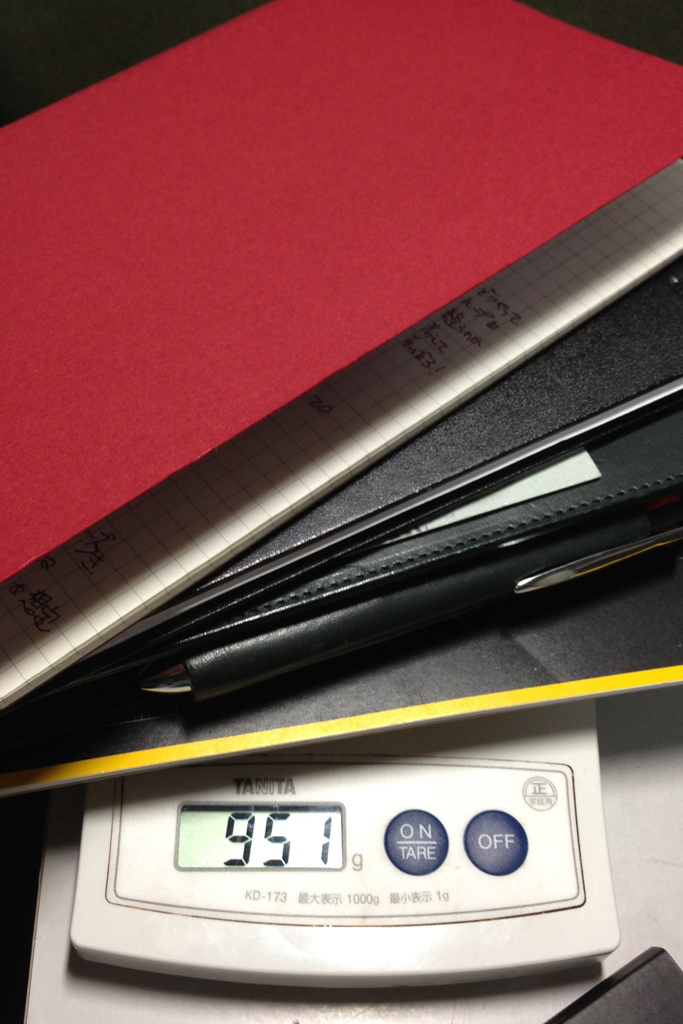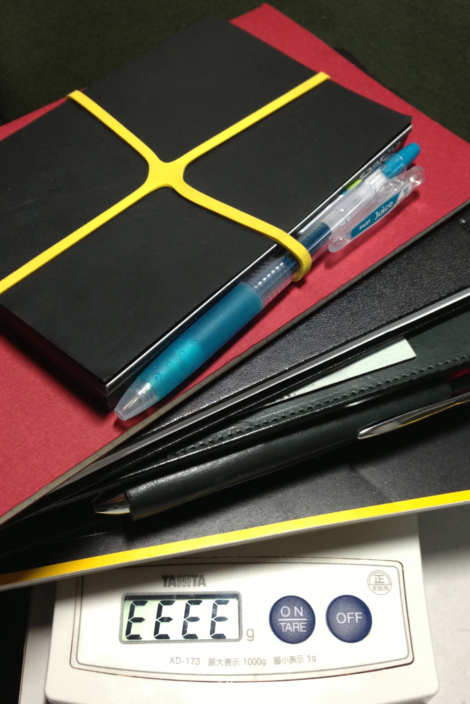 ついでなので、今持ち歩いている手帳/ノートにカイエを加えたらいったいどのくらいの重量になるのかを測ってみることにしました。