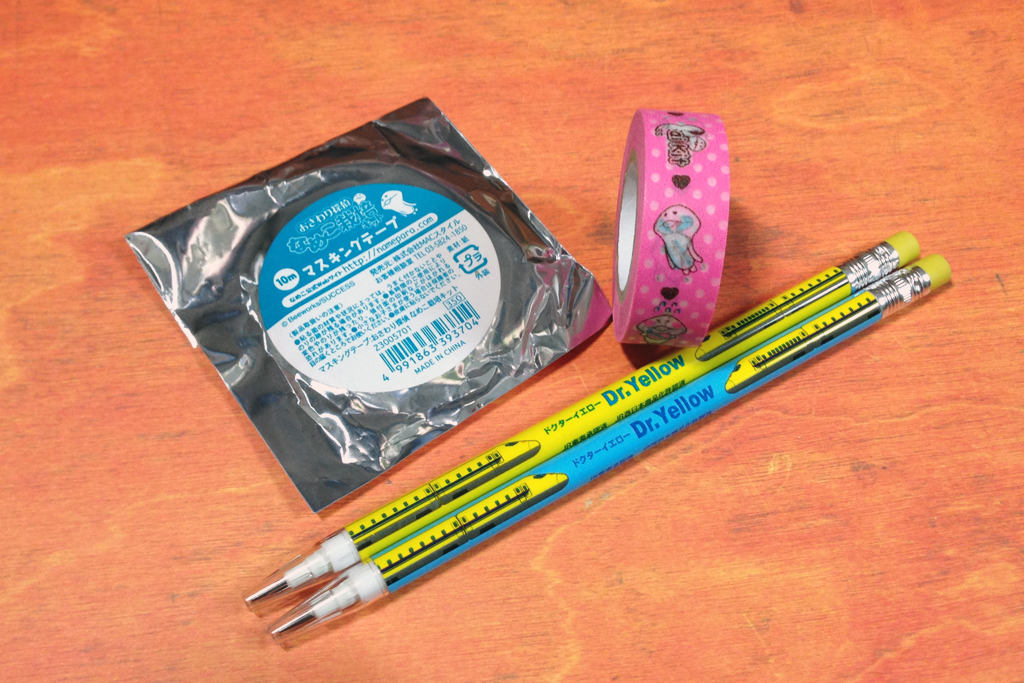 ドクターイエローのロケットペンシルと、なめこマステです。