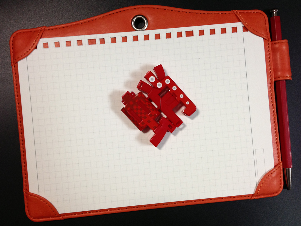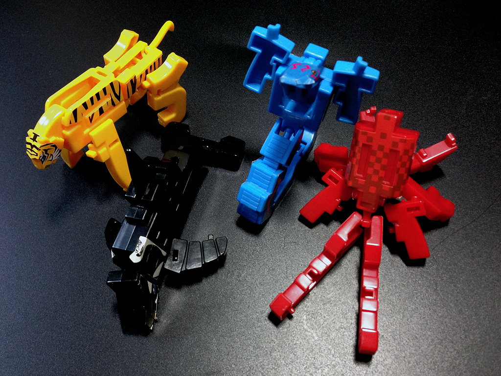 ところで、ジョッターの上に載っている虫みたいなものは、いまダイノジ(6歳1ヶ月)がはまっている「漢字からその文字の意味する動物に変形する玩具」モジバケルの「たこ」です。
