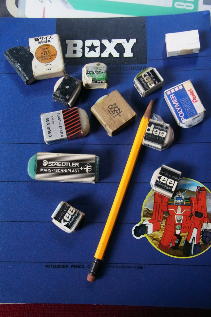 年代でいうと1973年(昭和48年)から1990年(平成元年)までのものですが、ここにあるほとんどは鉛筆を除けば80年代のものと思われます。